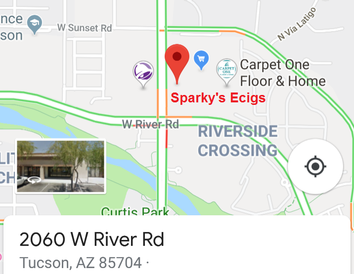2060 W. River Rd. 520 293-3573 www.SparkysEcig.com Welcome to Sparky's Electronic cigarettes. Sparky's is Tucson's Premier Vape Shop & Lounge! Our E-Juice is made In-Store using only the best flavorings. Best juice in town!!! We have TONS of the Newest and Best Vape Items to! Buy online at Sparky's